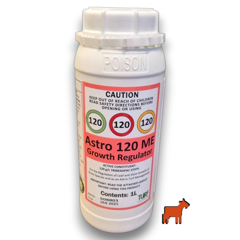 Astro 120 ME Growth Regulator is an efficient and versatile turf management tool that maximizes turf quality, pre-conditions for stress prevention, and optimises resources. For the regulation of leaf and stem growth of grass species and as an aid in turf management, as per the Directions for Use .