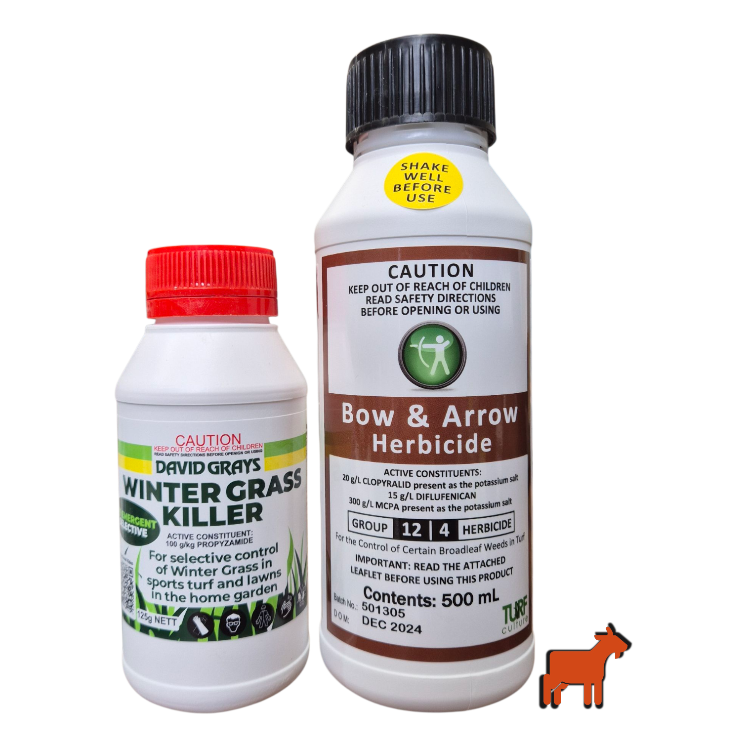 Bow & Arrow Herbicide provides excellent broadleaf weed control in turf with a formulation containing the active ingredients, MCPA as potassium salt, clopyralid as potassium salt and diflufenican. It is used at an application rate of 50ml per 100m2.